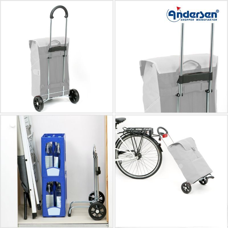 Pomocí přípojného systému značky Andersen Bike & Easy můžete vozík i s nákupní taškou snadno připojit k jízdnímu kolu a užívat si tak ještě větší flexibilitu v každodenním životě.