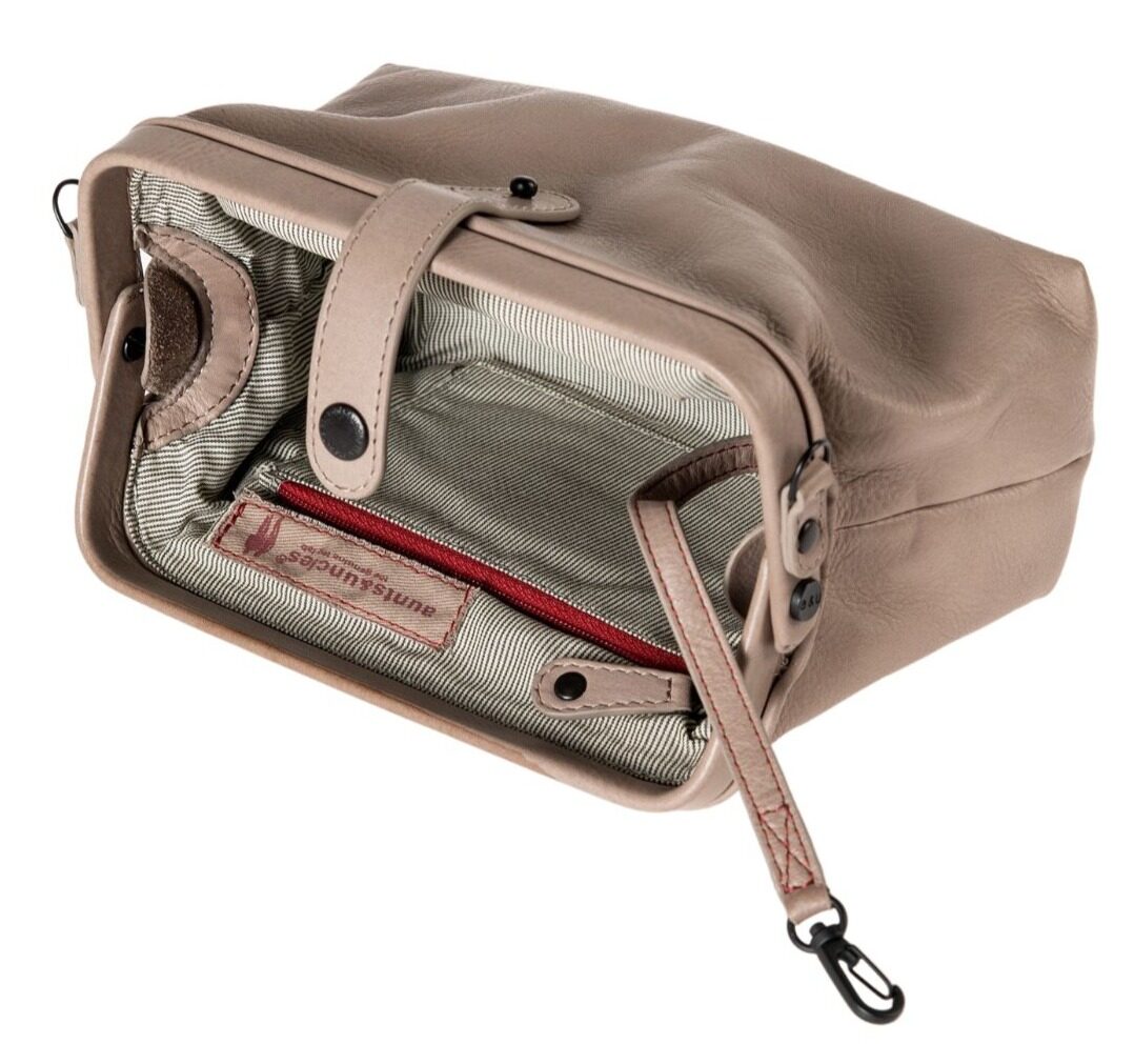 - originální kožená kabelka s vyztuženým rozklapávacím vstupem