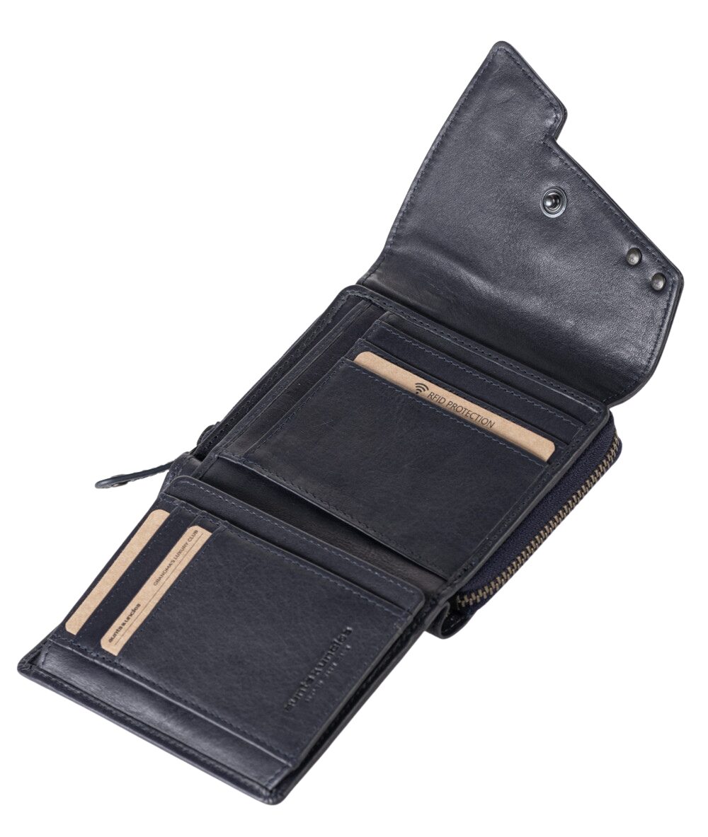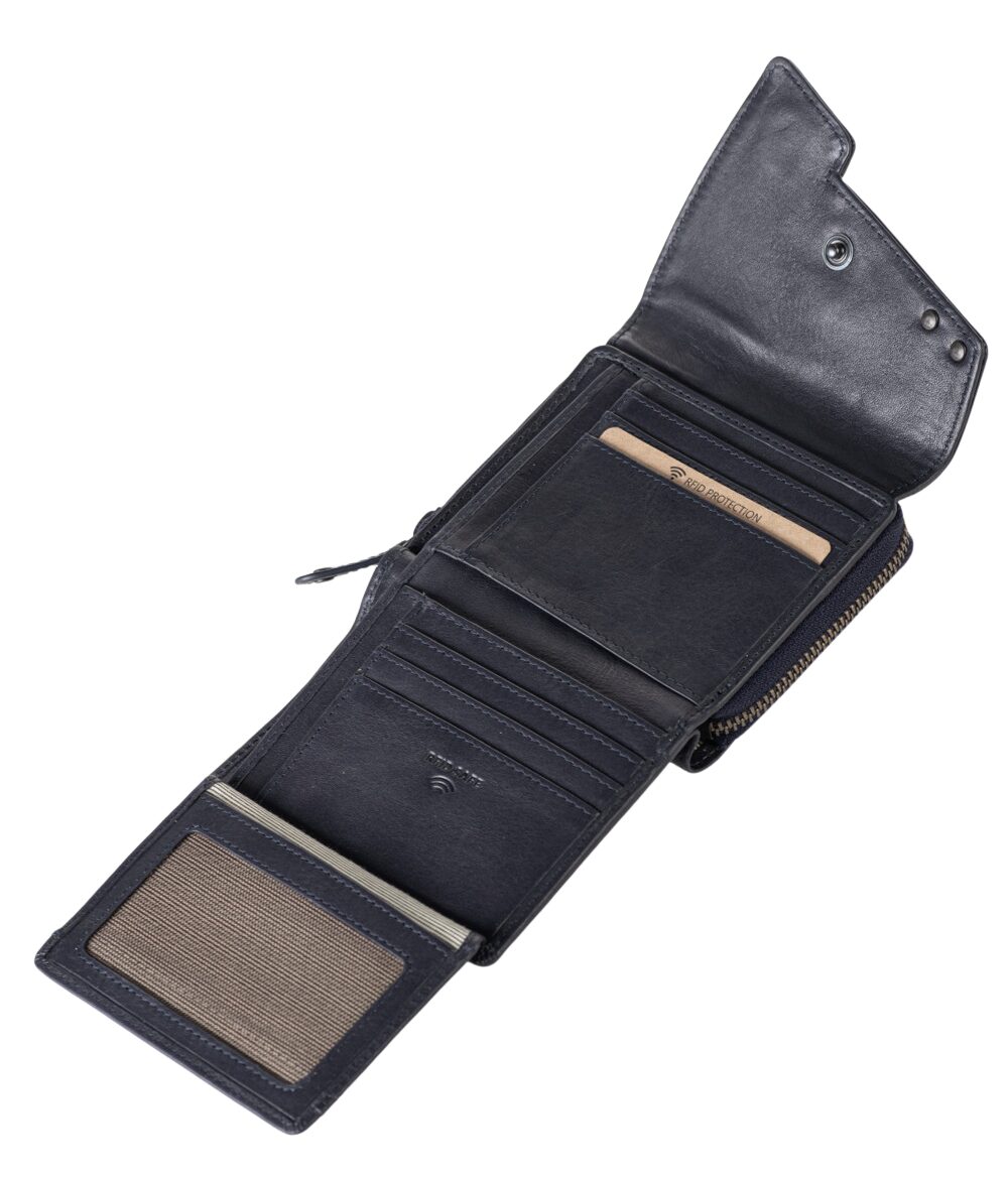 Dámská kožená peněženka Lotta značky aunts & uncles z kolekce Grandma's Luxury Club zaujme jedinečným designem se šikmou klopou s ozdobným prošíváním i praktickým vnitřním členěním, které vám pomůže efektivně zorganizovat vaše finance. Kompaktní dámská peněženka nabízí 14 slotů na platební karty chráněných proti zkopírování technologií RFID, přihrádky na bankovky, průkazky i fotografie a rovněž samostatnou zipovou přihrádku na mince, která tvoří zadní část peněženky. Peněženka Lotta je ideální volbou pro ženy, které hledají stylový a bezpečný módní doplněk -pořiďte si koženou peněženku Lotta ještě dnes a dopřejte si i vy kvalitu, která vydrží roky.