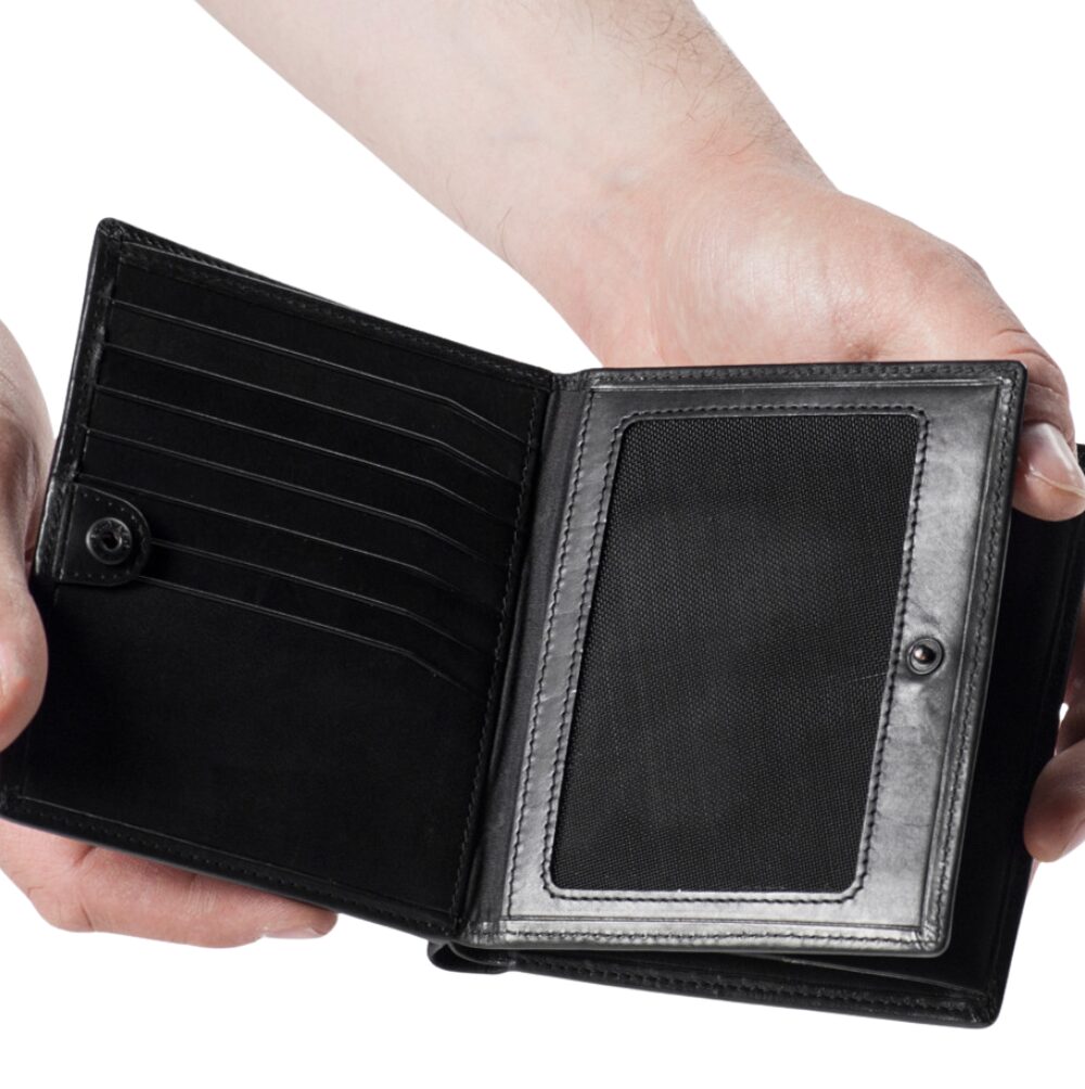 - 2 přihrádky na bankovky – v přední přihrádce 2 sloty na karty