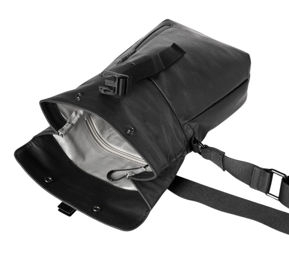 - taška se uzavírá pomocí rolovací klopy se 2 patentkami a kovovou sponou