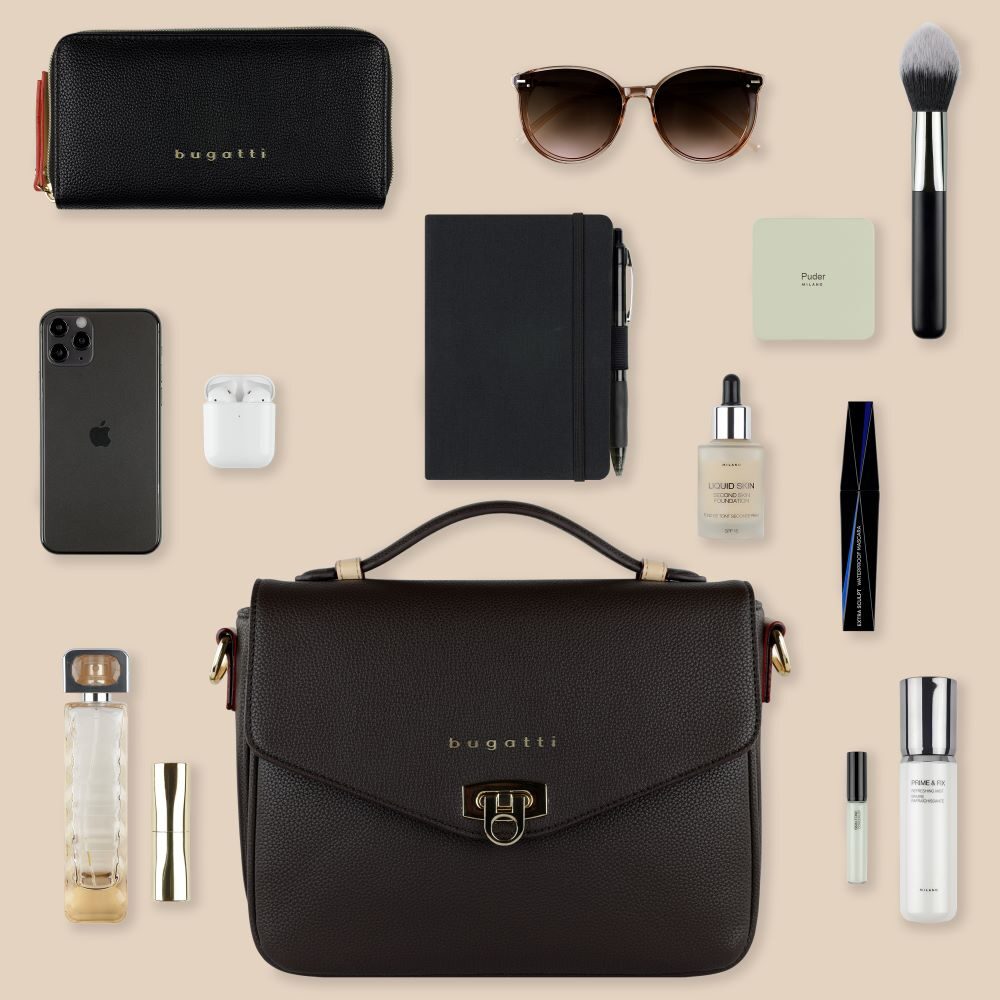 Elegantní dámská kabelka do ruky i přes rameno Ella značky Bugatti je skvělý společník na cestu do zaměstnání i pro všechny výjimečné chvíle. Kabelka přes rameno s moderním designem doplněným kontrastní béžovou barvou a zlatými detaily je vybavená odnímatelným ramenním páskem i praktickým držadlem do ruky a je jen na vás, zda si kabelku přehodíte přes rameno nebo ponesete v ruce. Pokud hledáte variabilní dámskou kabelku s luxusním lookem pro každou příležitost, přesvědčte se o jedinečnosti kabelky Ella značky Bugatti.