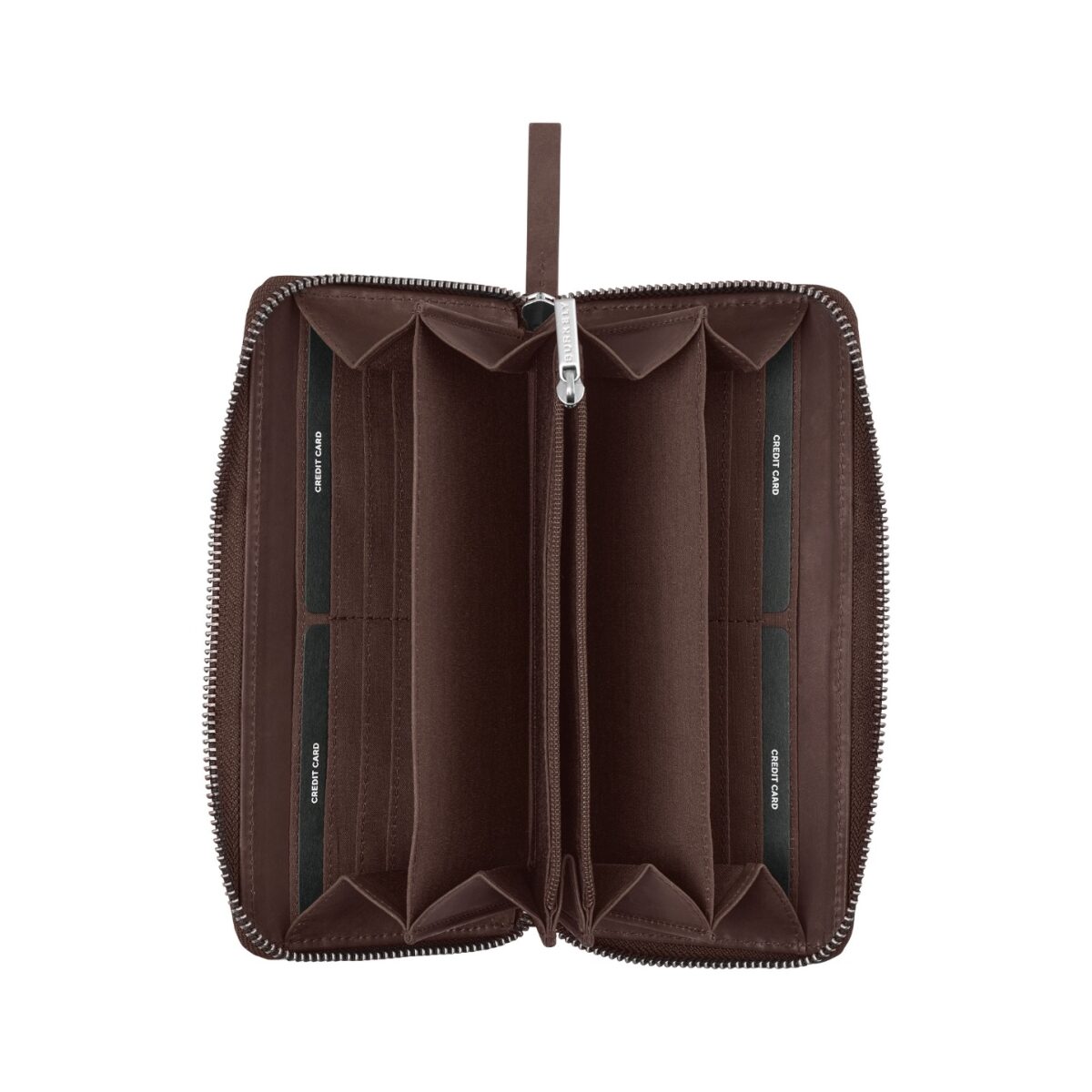 - logo značky Burkely na přední straně peněženky
