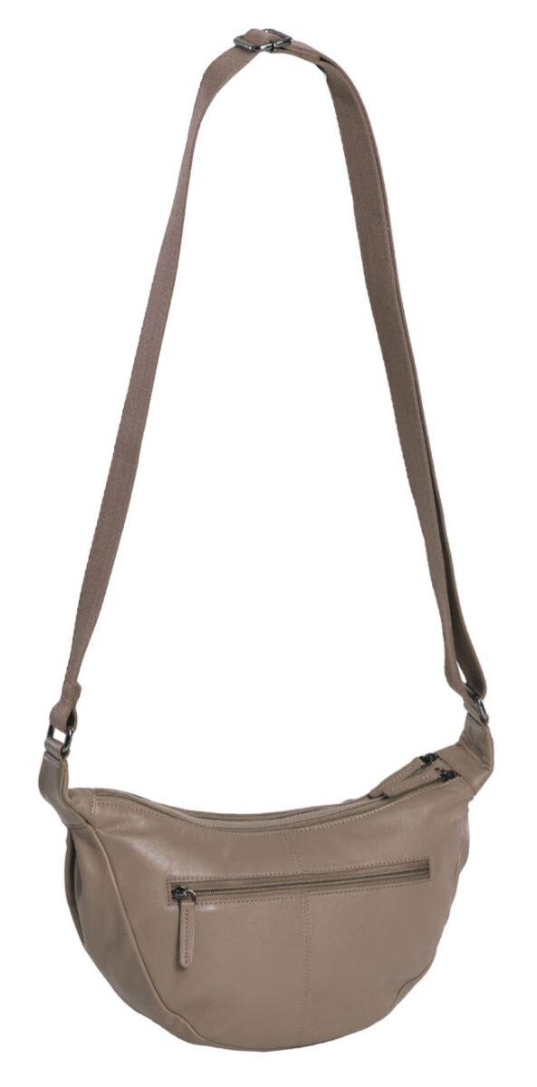 Kabelka přes rameno Moon Bag Port Augusta značky Daniel Ray je stylová a nadčasová kabelka ve tvaru půlměsíce, která je ideální volbou pro všechny, kdo hledají elegantní, ale výrazný doplněk. Kabelka vyrobená z jedinečné, měkké hovězí kůže nabízí dvě samostatné hlavní zipové přihrádky, do kterých snadno uložíte všechny vaše nezbytnosti, jako jsou telefon, peněženka, make-up či malá lahev s vodou. Kabelka je vybavena nastavitelným ramenním popruhem, s jehož pomocí ji můžete nosit přes rameno nebo křížem jako crossbody. Díky své univerzálnosti a nadčasovému vzhledu se tato kabelka přes rameno - Moon Bag stane vaším oblíbeným doplňkem pro každou příležitost, vyzkoušejte ji i vy!