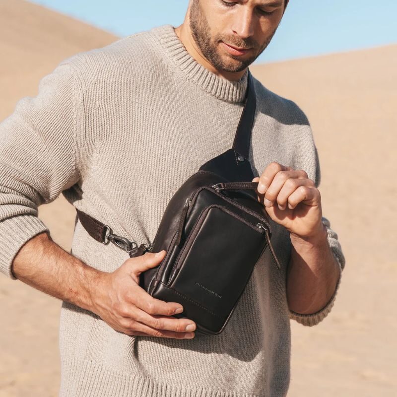 Pánská kožená taška na doklady ve stylu crossbody? Kožená crossbody dokladovka Riga je ideální společník na cesty, pochůzky městem, festival i malý výlet. Tato stylová kožená taška vyrobená z hovězí kůže se speciální voskovou úpravou nabízí prostornou hlavní přihrádku na zip, menší přihrádku s otevřenou kapsou na mobil a třemi sloty na doklady či platební karty a výklopnou kapsičku na zip na klíčenku či peněženku. Poslední zipová přihrádka je důmyslně ukrytá na zadní straně tašky. Díky délkově nastavitelnému ramennímu popruhu s karabinkou můžete tento stylový doplněk pohodlně nosit různými způsoby – jako crossbody na hrudi, na zádech, nebo ležérně přehozenou přes rameno.