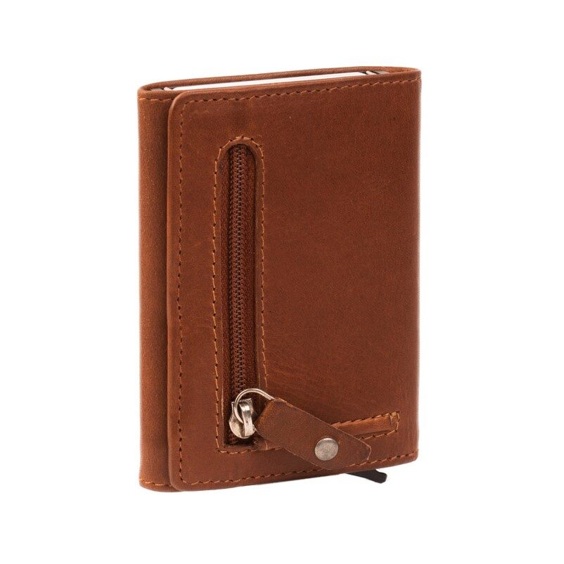 Kompaktní, elegantní, praktické. Stylové kožené pouzdro na karty Palma z dílny nizozemské značky The Chesterfield Brand s hliníkovým jádrem a výsuvnou mechanikou pro uložení až 6 platebních či zákaznických karet. Zapomeňte na dlouhé hledání karet u pokladny! Zatáhnutím za malou páčku na spodní straně pouzdra vysunete najednou všechny karty z pouzdra a vámi hledanou kartu budete mít ihned po ruce. Tato minimalistická peněženka disponuje rovněž zásuvnou přihrádkou na bankovky a samostatnou zipovou přihrádkou na mince. O bezpečí citlivých dat na vašich kartách se postará integrovaná RFID technologie.