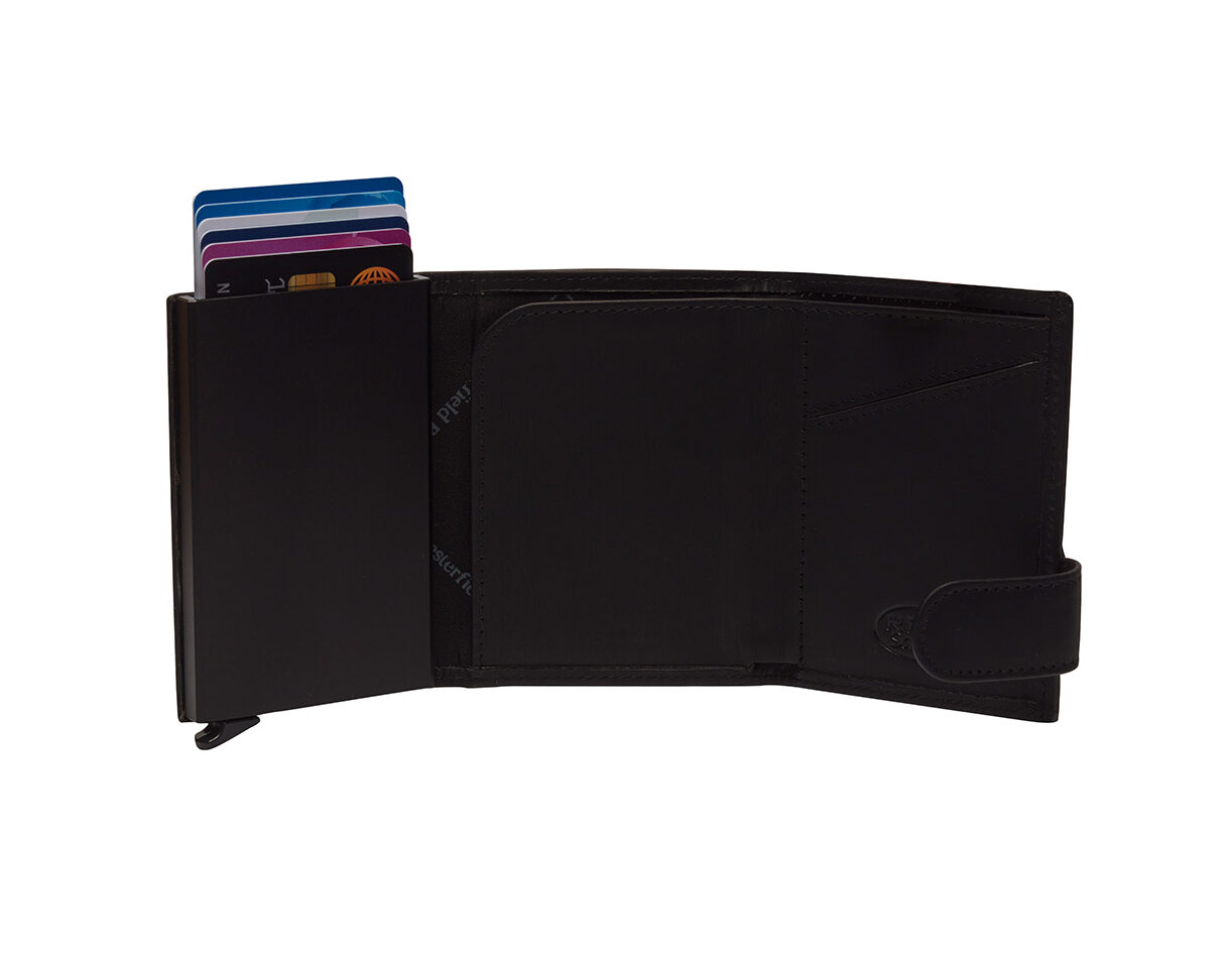 Stylové a bezpečné kožené pouzdro na karty s RFID ochranou? Malá peněženka a pouzdro na karty Frankfurt z dílny nizozemské značky The Chesterfield Brand je elegantním doplňkem a zároveň funkčním pomocníkem pro uložení a organizaci platebních karet, bankovek i drobných mincí. Je vyrobené z voskované hovězí kůže a pyšní se hliníkovým jádrem s výsuvným mechanismem, do kterého lze bezpečně uložit až šest kreditních karet. Kožené pouzdro Frankfurt se vejde do každé kapsy džínů i saka a disponuje také zásuvnou přihrádkou na papírové bankovky a samostatnou přihrádkou na mince na zadní straně. O bezpečnost se postará integrovaná technologie RFID.