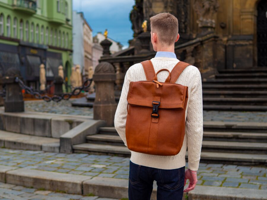 - rolovací batoh - kožený business batoh s přihrádkou na notebook - roll top batoh